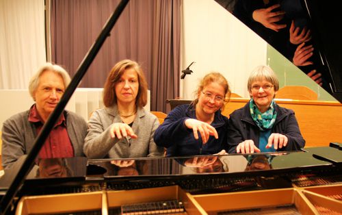 Im mitreißenden Einsatz: Christiane Abt, künstlerische Mitarbeiterin am Institut für Musik der Oldenburger Uni; Gabriele Hoeltzenbein, Kammermusikerin und Kirchenmusikerin; Ruth Ense, Klavierpädagogin an der städtischen Musikschule; Ronald Poelman, Klavierpädagoge, Komponist, Improvisator. Es sind vier Musiker, die Freude und Willen daran spüren lassen, etwas gemeinsam zu entwickeln, ohne reibende Gegensätze wegzuschrubben. Jeder schärft bei aller Kongruenz sein eigenes Profil.